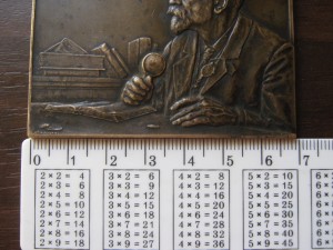 В память 30-летия его научно-литературной нумизматической деятельности (1883–1913 гг.). С.-Петербург, 1915 г. Мастерская (ателье) А.Ф.Жакара. Медальер Георгий (Егор) Иванович Малышев (лиц. ст. – внизу слева: Е.И.Малышевъ; об. ст. – под изображением оборотной стороны монеты: А•Жакаръ). Бронза, 117,11 г. Размеры 50,9x69,0 мм. Сохранность отличная. Клеймо на гурте вверху слева: «S». Луппол А.Н. Плакета в честь А.В.Орешникова // Нумизматический сборник. Ч.1 / Труды ГИМ. Ч.1. Вып.XXV. М.,1955. С.24–33. Табл. I–VI. Щукина 2000. С.228. Дьяков# 1558.1 (R3). Очень редкая.