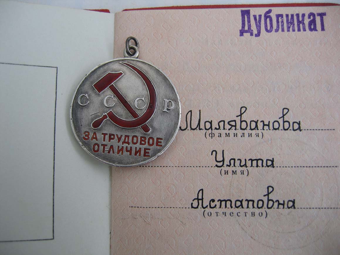 Медали Серп и Молот, За Трудовую Доблесть, За Трудовое Отличие, За Доблестный Труд в Великой Отечественной Войне,За Восстановление Предприятий Чёрной Металлургии Юга, За Восстановление Угольных Шахт Донбасса, За Освоение Целинных Земель, За Строительство БАМ, За Преобразование Нечерноземья РСФСР, За Освоение Недр и Развитие Нефтегазового Комплекса Западной Сибири, Ветеран Труда