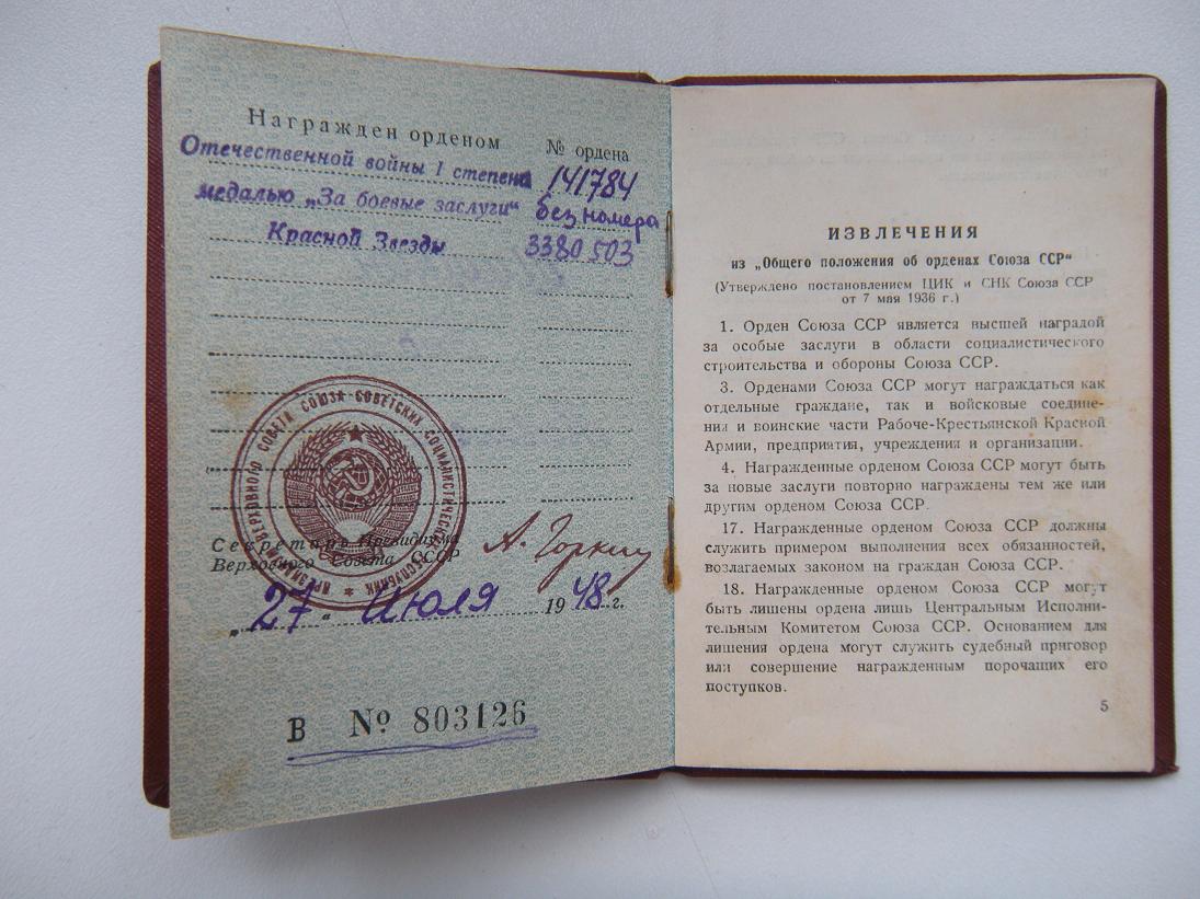 Красного Знамени, Суворова, Кутузова, Богдана Хмельницкого, Александра Невского, Ушакова, Нахимова, Отечественной Войны, Красной Звезды, Славы, За Службу Родине в ВС СССР