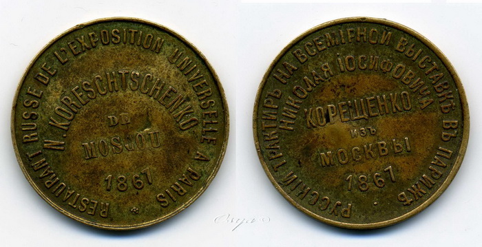 Жетон русского ресторана на Парижской выставке 1867г.