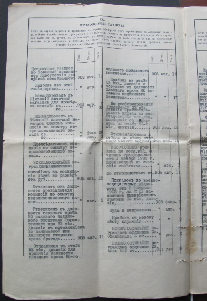 ордена Св.Владимира 3 и 4ст.,Св.Анны 2 и 3ст.,Св.Станислава 2 и 3ст., медали: В Память Царств.Александра III , В память 300лет.Романовых.