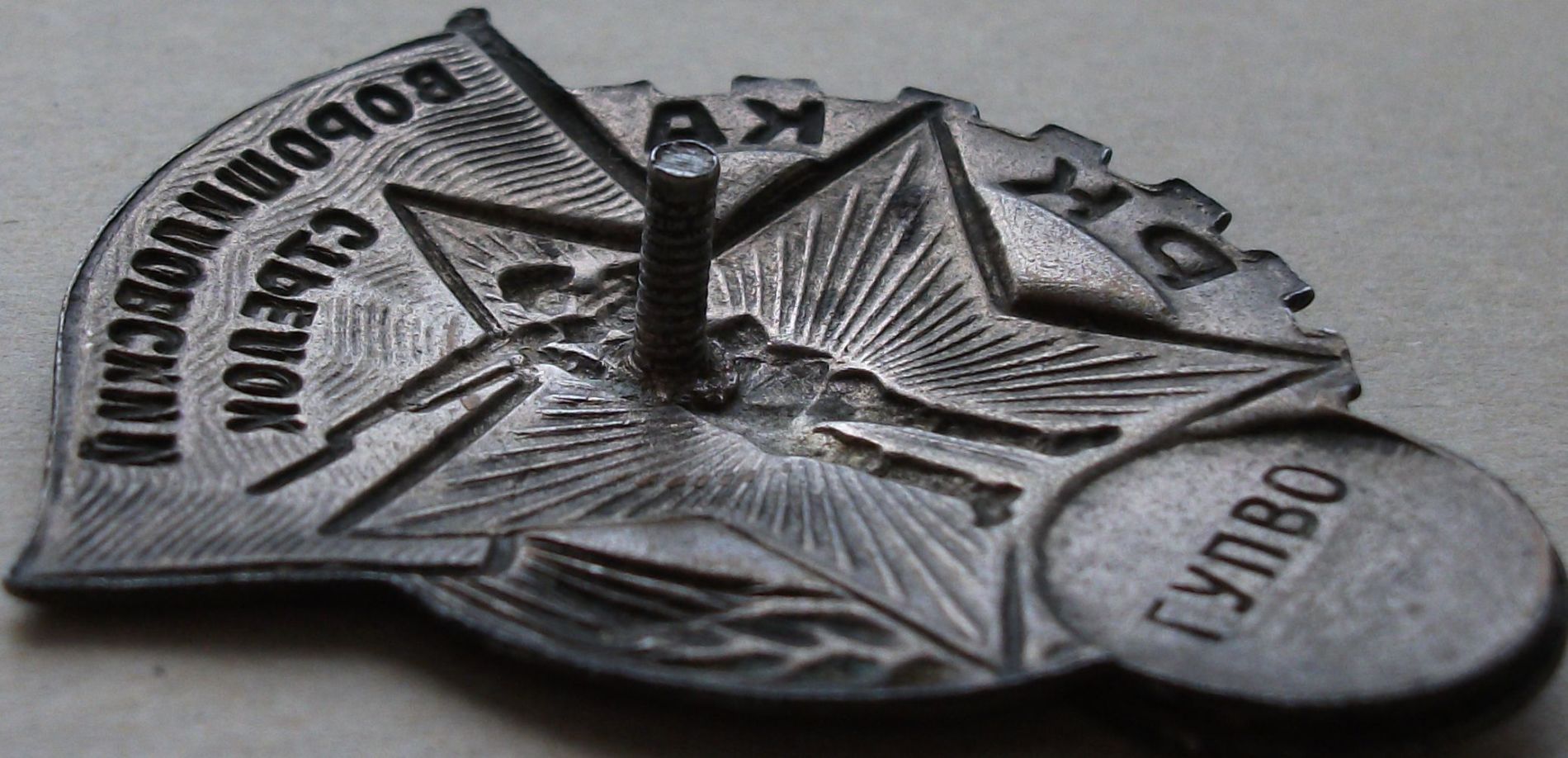 По эмалям, есть мелкая чешуйка на краю флага, на фото показал, в живую вид не портит.
