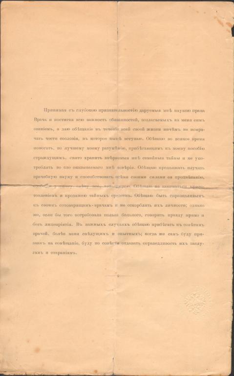 Диплом об окончании военно-медицинской академии в г.С.Петербурге.