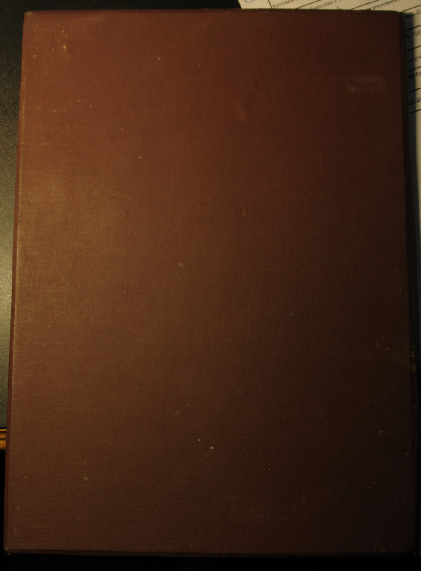 Состояние на сканах: Желтоватый развод влаги на внутренней материи папки и немного снаружи по краям самой грамоты; небольшой надрыв сверху по сгибу.