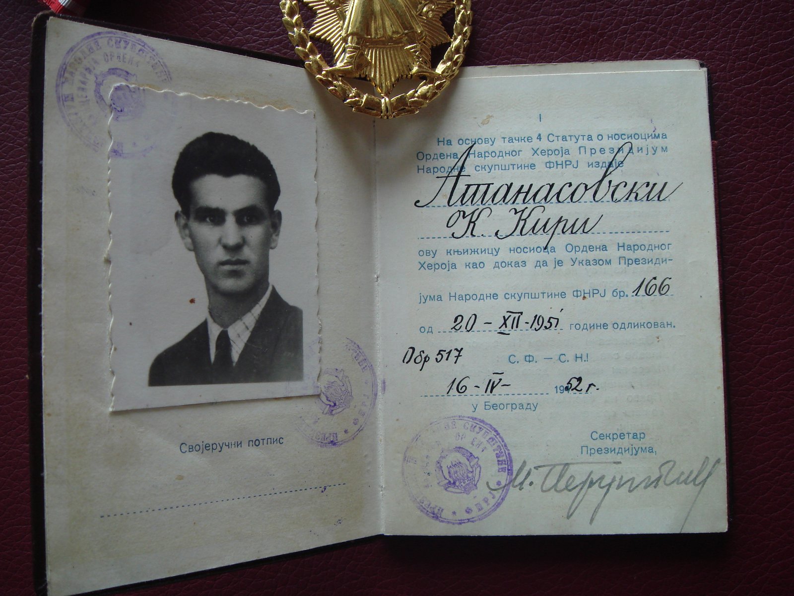 НАРОДНЫЙ ГЕРОЙ ЮГОСЛАВИИ золото +документ ТИП 2 ИКОМ