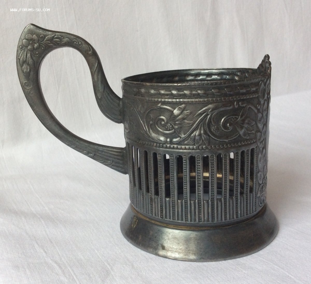 Редкость по каталогу Сергея Круглова-4. Достаточно редкий подстаканник в отличном коллекционном состоянии. Без ударов, нарушений формы, реставрации. Только незначительные лёгкие поверхностные следы бытования. Густая тёмная патина, металлический блеск и люстр по всему подстаканнику.
