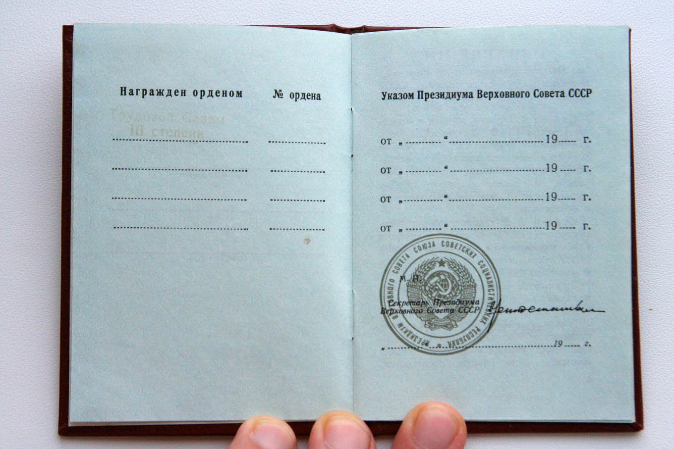 Орденская книжка (Менашв.), мытая №301067