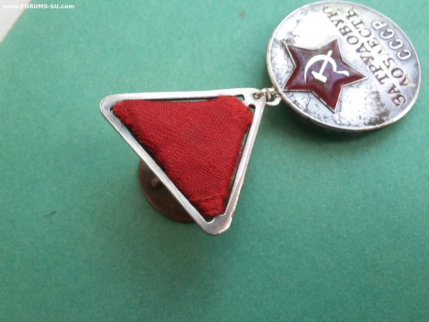 У эмали на звездочке хороший сохран, а в буквах кое где осыпалась. Всё детали медали подлинные, но это сборняк. Звено запаяно, но не на мондворе. Лента не родная