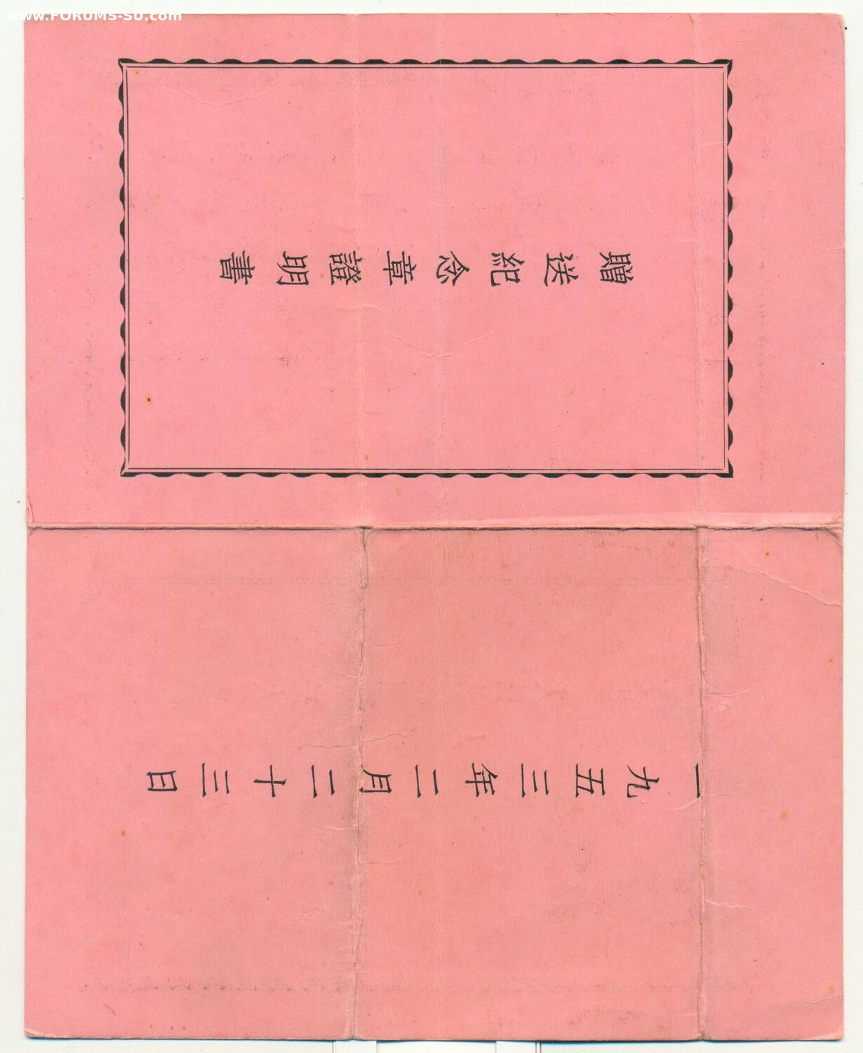 «Китайско-Советская Дружба» 1953 г. с удостоверением