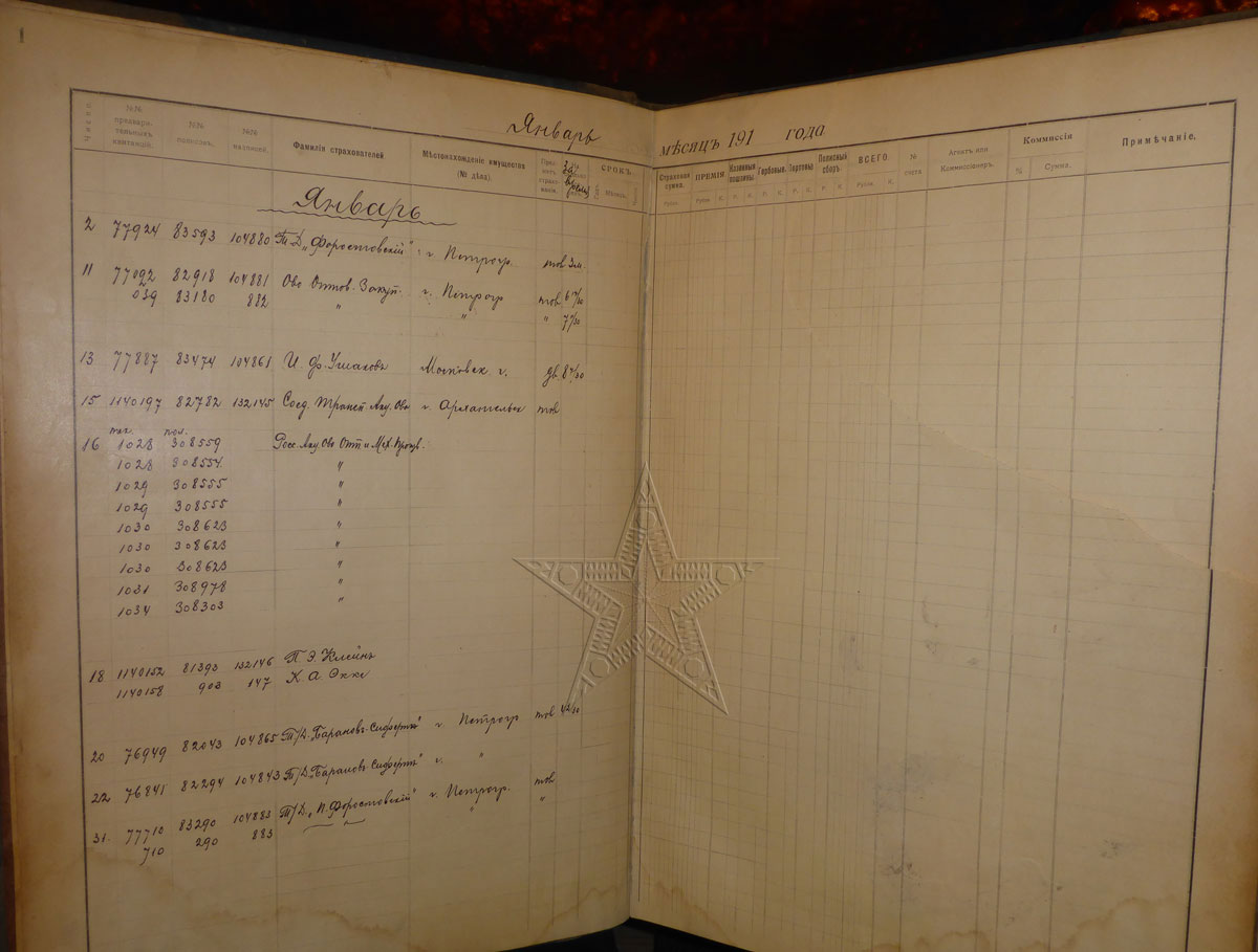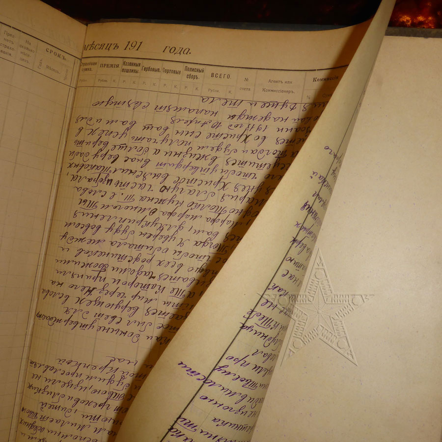 Сталевар писал(а):82) Журнал служебный Страховое общество Якорь (Петроградская контора) 1918-1919. Заполнена одна страница. Нет нескольких страниц. На последнем листе написана молитва. Встречается впервые. Размер 45х33 см.