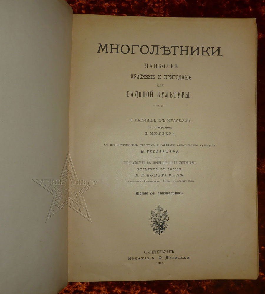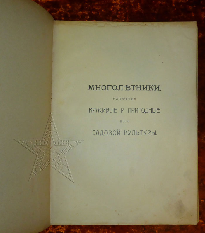 Сталевар писал(а):83) Книга Садовые Многолетники (Многолетники, наиболее красивые и пригодные для садовой культуры). 1913 год. Имеется отслоение одного блока (см. фотографию). Без печатей и штампов.