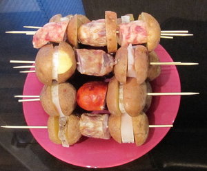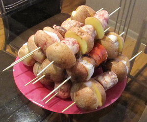 Сейчас приготовил компоненты и наколол на шампура.