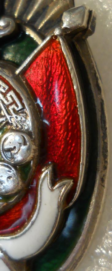 Если бы штифт крепления паялся на серебряный припой то эмалька бы пошла....,