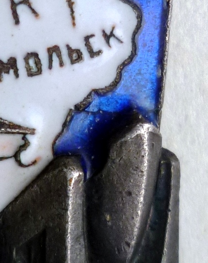 По просьбам в личку добавляю крупные фото синей эмали. В живую похоже на производственный дефект.