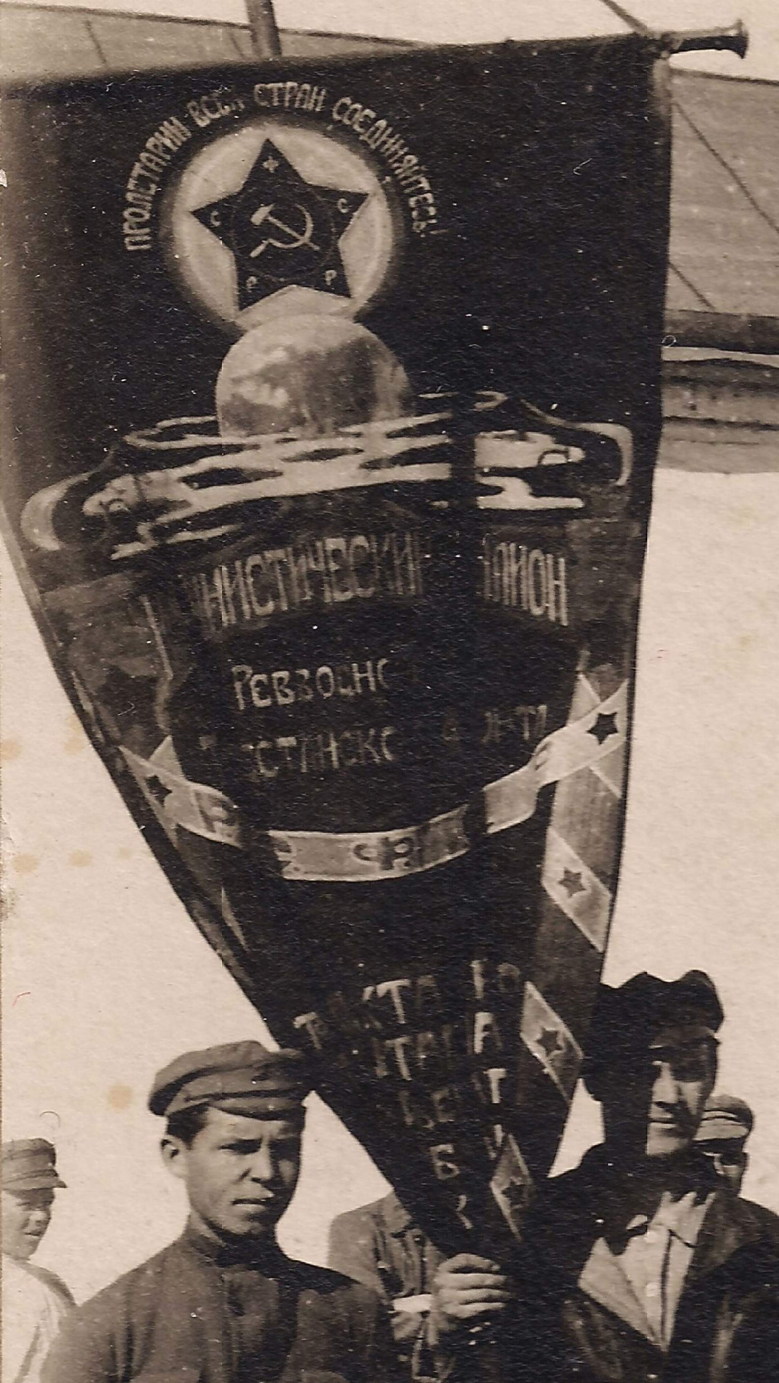 Надпись на знамени - " Коммунистический батальон Реввоенсовета Туркестанского фронта, диктатура пролетариата ......."