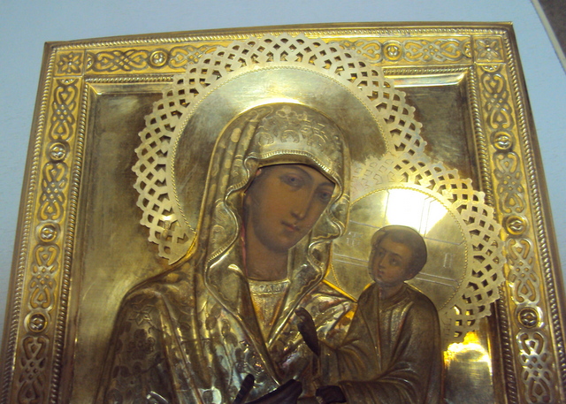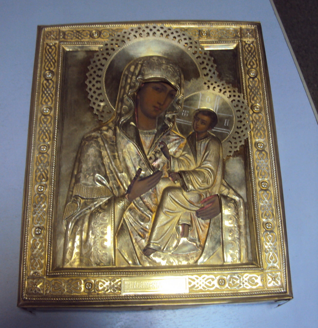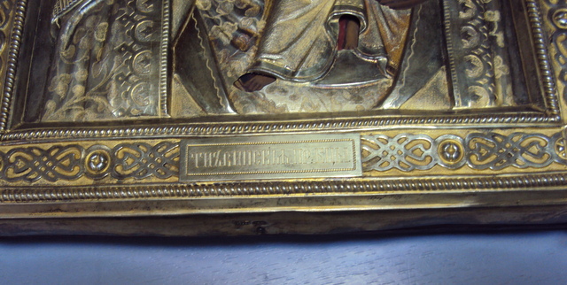Сохран иконы. Оклад кованный. Позолота. темпере письмо. Размеры иконы 30 на 220 на 270 мм.