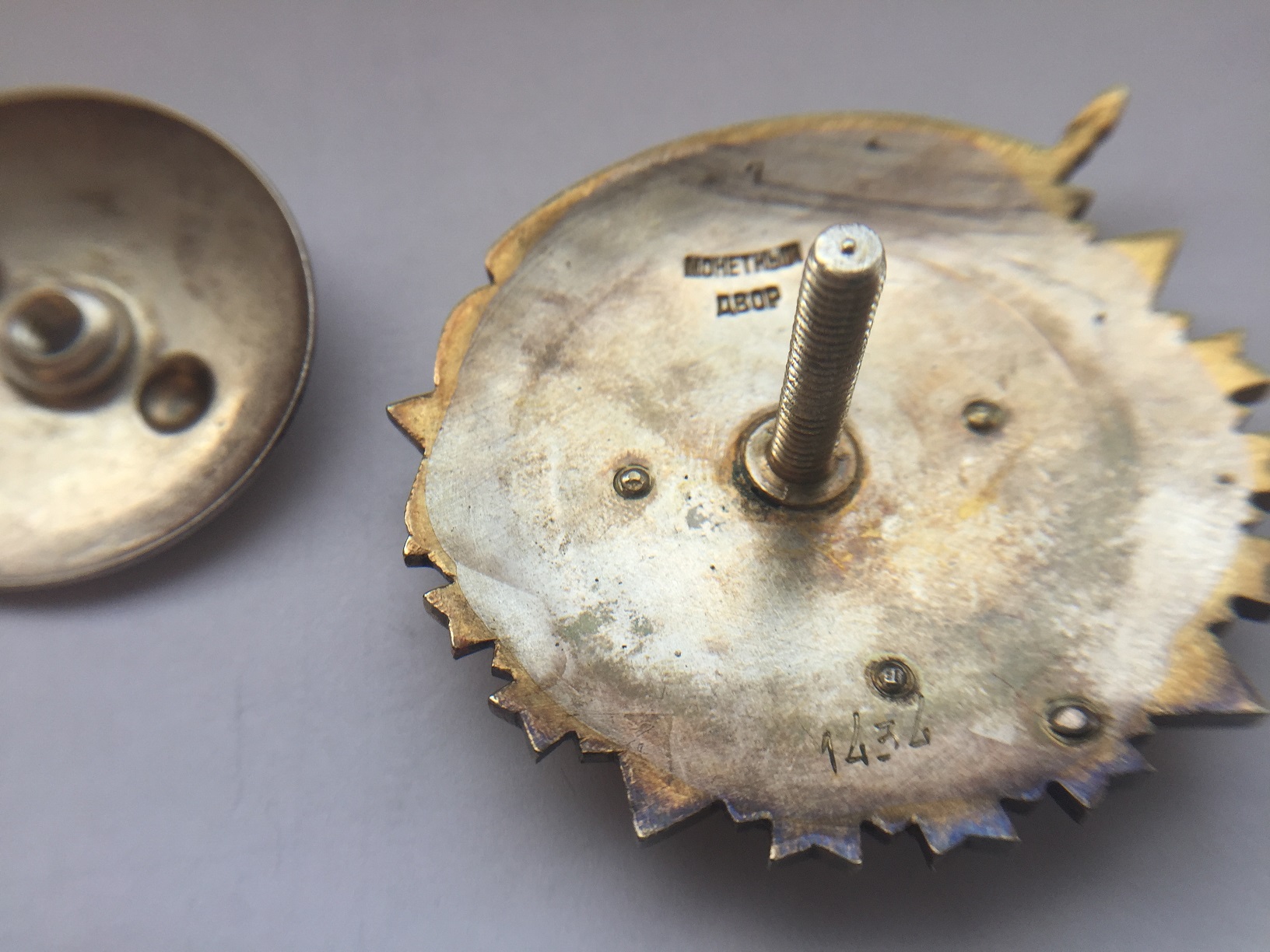 С обратной стороны клеймо Монетный двор (выше тех. клеймо 7), номер знака №1434