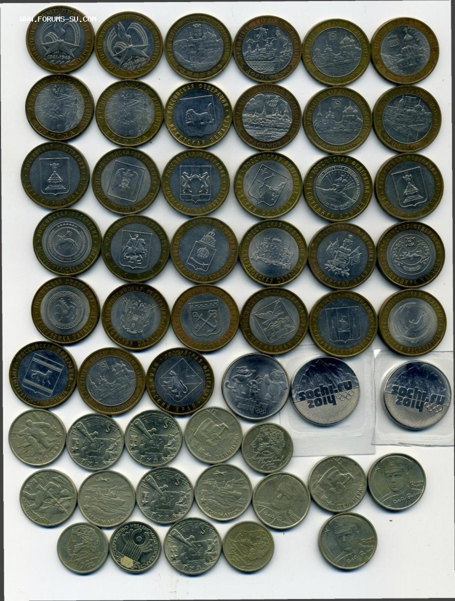 93 шт 10 руб. большинство Вологда - 38 шт, 7 шт Адыгея. Эти монеты мешковые.