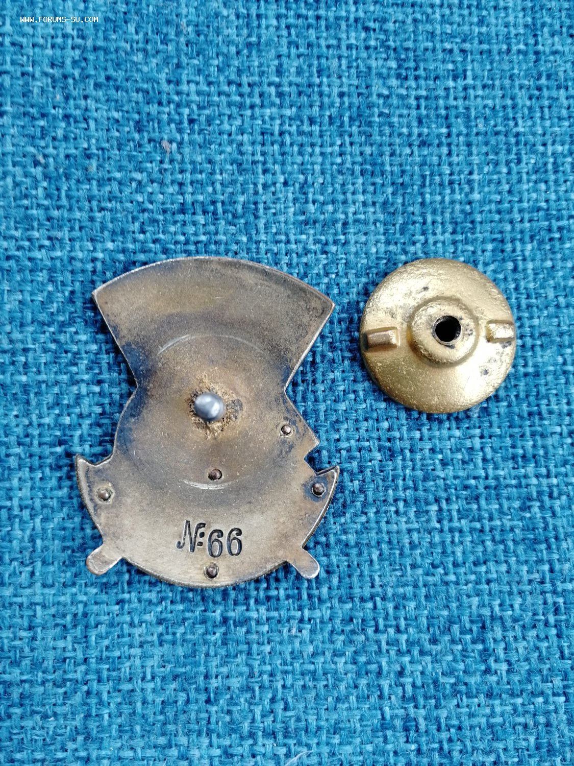 #6220108 Разновидность с пятью клепками, стальной гайкой крепления и отличными пуансонами номера. 1938 год, Ленинград, размер 28,5*35,5, томпак, горячие эмали, золочение, серебрение, чернение. Гайка стальная с позолотой. Тираж около 300 экземпляров.