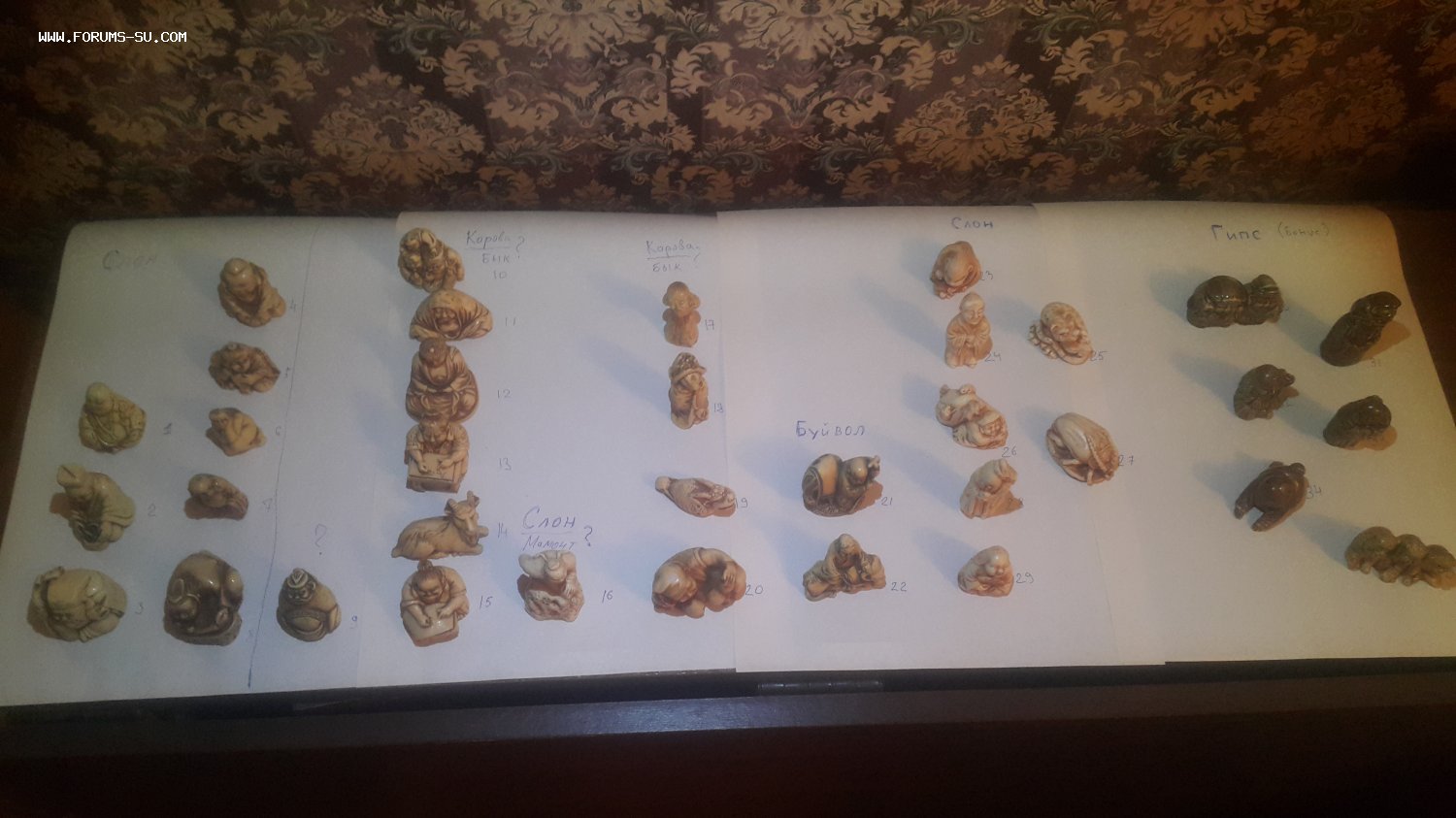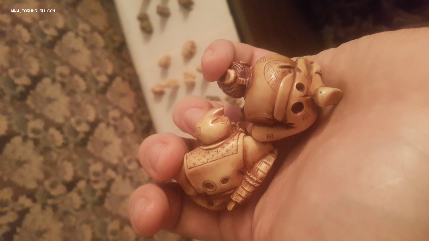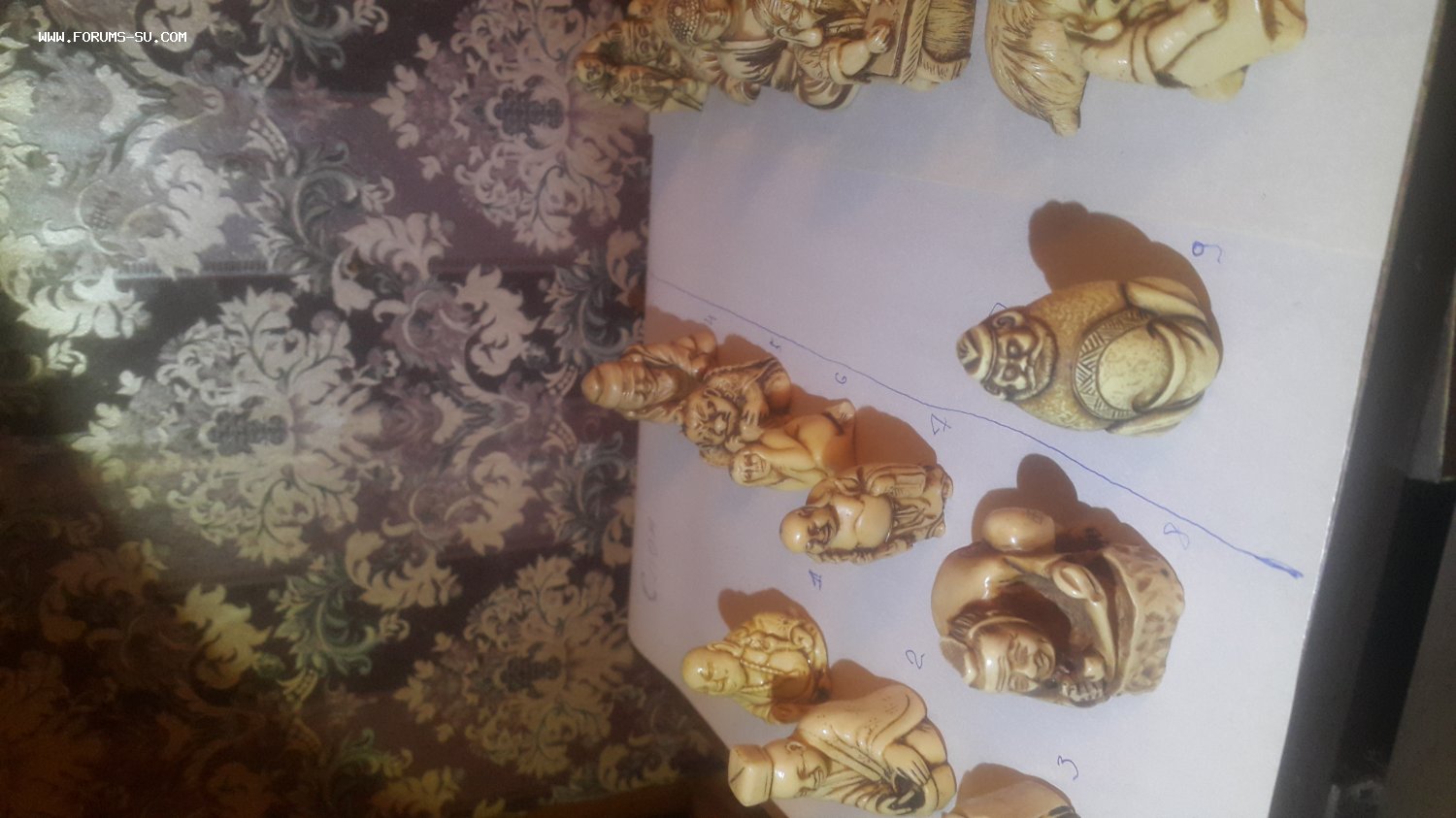 Добрый день. Предлагаю Вашему вниманию коллекцию китайских нэцкэ, материал в основном кость слона, буйвола, быка, есть несколько из гипса (см. Фото там подписаны материалы). В нашу семью попали в 60-е годы. Так же есть фигурка сделанная в СССР в 60-е годы неизвестным мастером, материал кость, предположительно быка. Ценителей к сожалению в семье не осталось - поэтому продаю. Предлагайте цену. Можно всех сразу, можно выборочно.