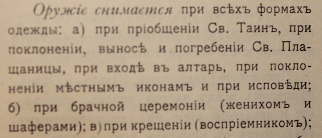 Мода переться в храм с оружием возникла у современного ряженого "казачества". До 1917 года были такие правила: