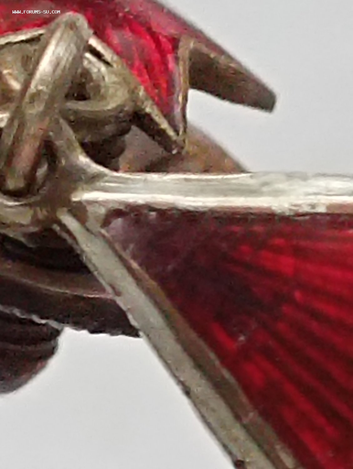 не видна, как ни вглядывайся. Для столетнего знака, который носился - эмаль в очень хорошем состоянии. Хотя каждый может воспринимать это определение со своей индивидуальной точки зрения, и выбирать для себя - покупать или не покупать.