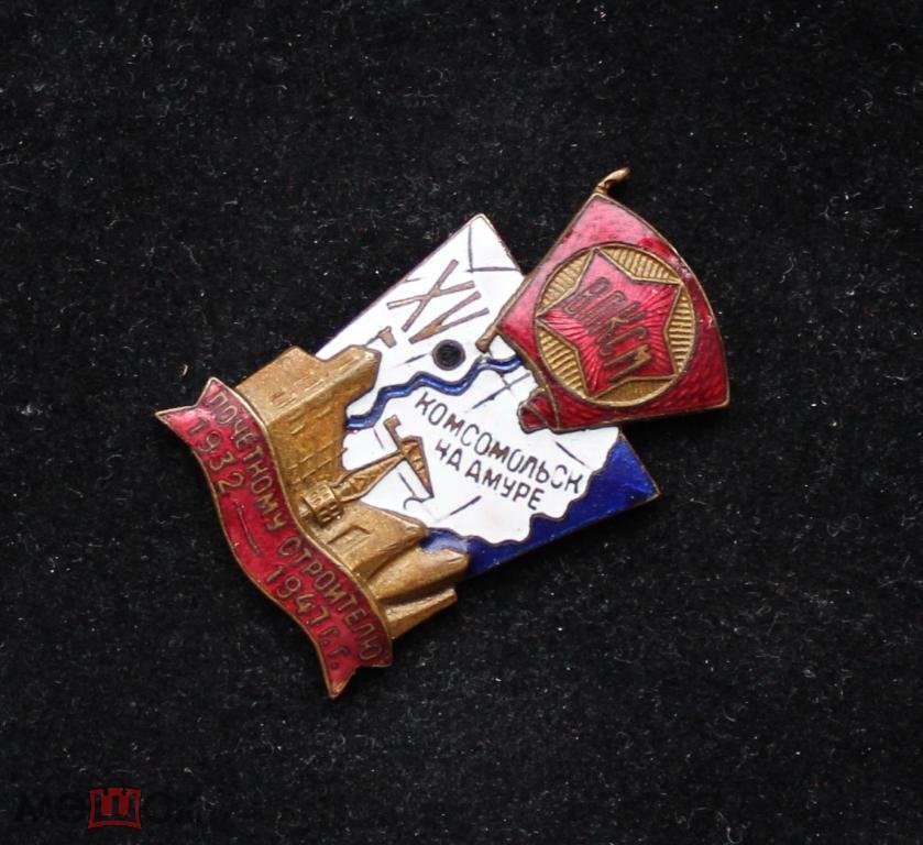 ЗНАК ВЛКСМ ПОЧЕТНОМУ СТРОИТЕЛЮ КОМСОМОЛЬСКА НА АМУРЕ. 1932 - 1947 ГОД. XV Знак подлинный. № 245. Оплата на карту Сбербанка. Пересылка по России 300 рублей.