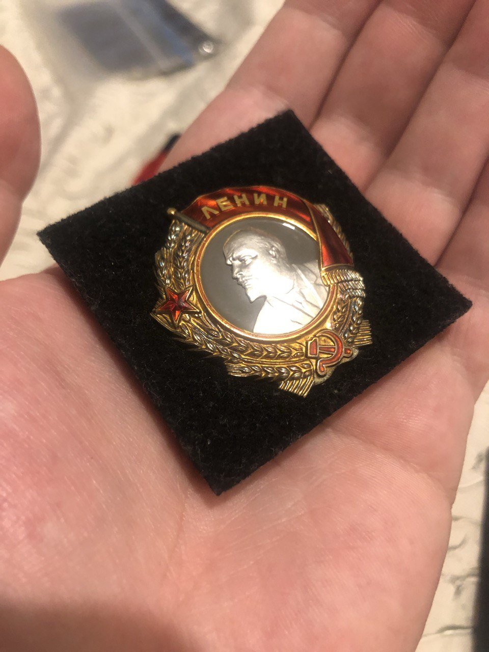 Почти люкс, небольшие внутренние трещины эмали у древка знамени, на фото показано. Знак не носился.