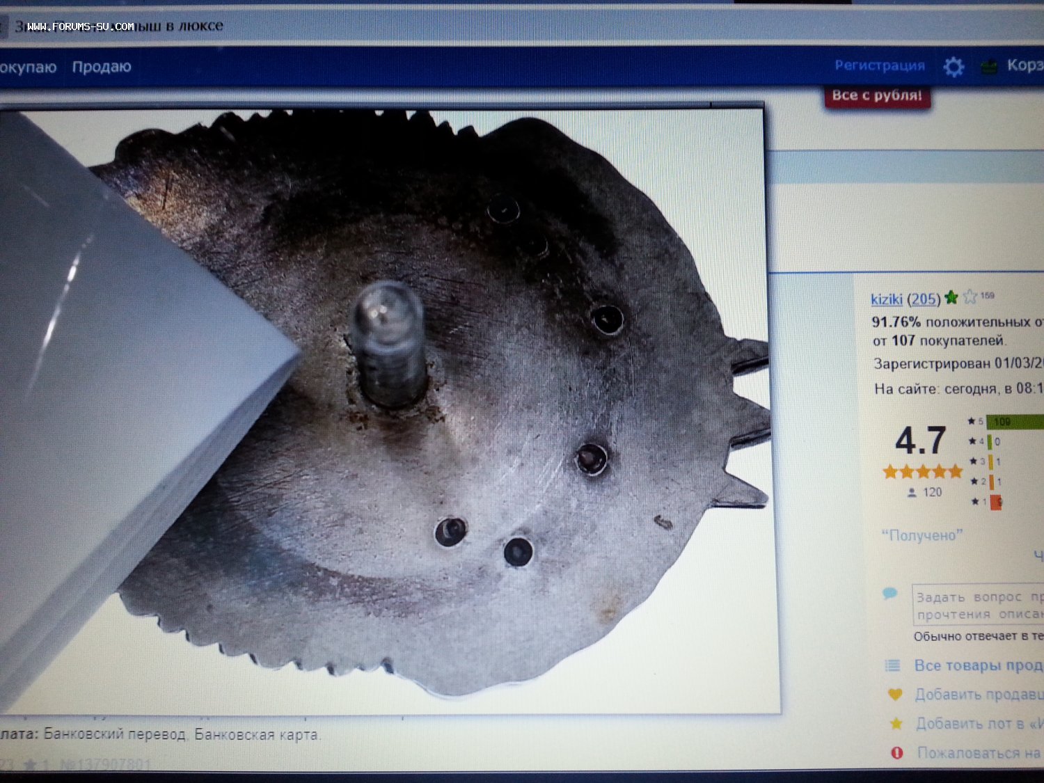 Доброго всем здоровья.Возникла проблема с форумчанином под ником george77.22 ноября ему на карту были переведены деньги в размере 360 тысяч рублей,за два предмета.Предварительно,в личке и на почту,обсудили условия и сроки доставки.Человек согласился.Срок сам определил до трех недель.Доставка должна была быть в США.Взял екстра деньги за это.Всё,что я получил за 5 недель ожидания,так это сообщение с каким то тракингом по России,и то только после моего ему сообщения,что пора внести какую то конкретику.На последующие два сообщения ответа так и не получил.Выводы соответствующие для себя сделал,по этому попросил перевести отправленные ему день обратно.Но похоже,человек решил,что уже все обязательства передо мной выполнил.[am=Vitali]Отправил приглашение в эту тему ему, ждем...[/am]