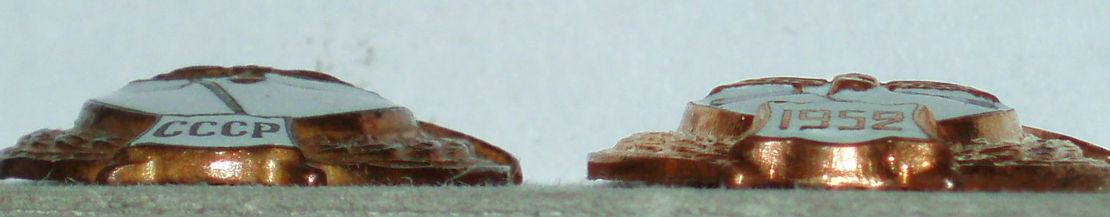 Что значит "цвет металла не характерный для этих знаков"? Все эти знаки изготавливались из томпака и выходили из под рук мастера абсолютно одинаковые, блестящие.