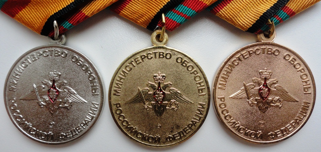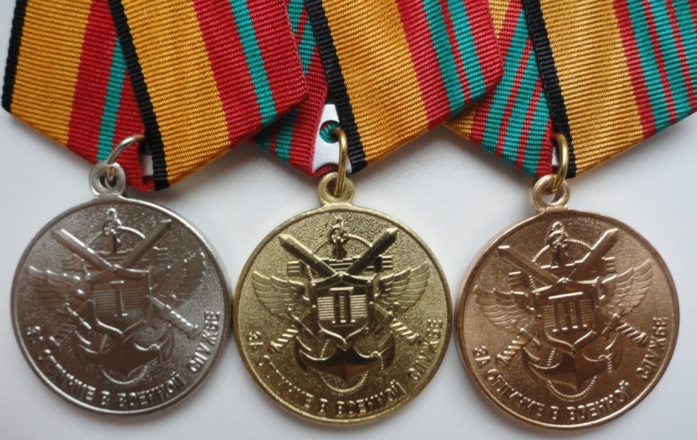Медали "За отличие в военной службе" 1, 2, 3 степени, нового образца, производство "Мосштамп".