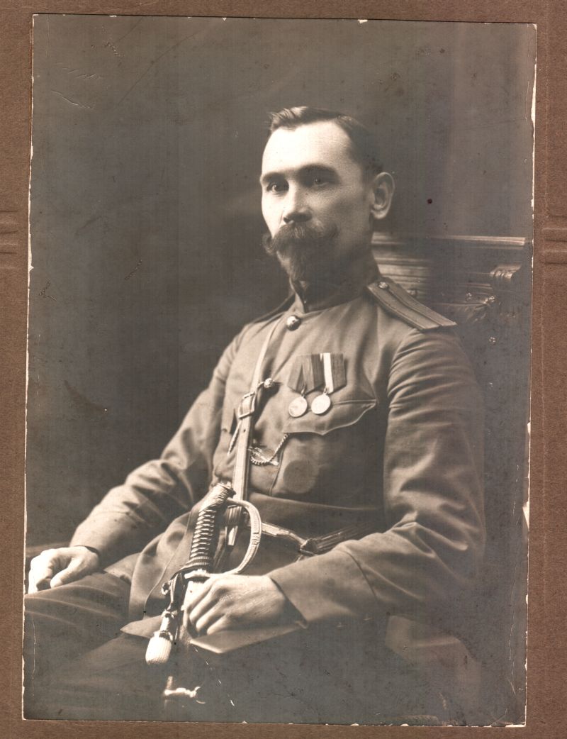 Хоть тут и написано ,что был не грамотным но достоверно знаю, что он форму, и все документы и грамоты относящиеся к белой армии, к периоду Первой Мировой войны и вероятно Японско- Русской войне, а так же своей учебе он прятал и уничтожал, что бы его не расстреляли когда арестовывали.