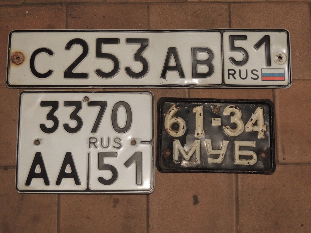 Вот они, красавцы. Мне с этим типом номеров долго не везло. Не сказать, чтобы он архи-редкий, найти можно. Но всё время такие номера проплывали мимо и мимо, а некоторых содержателей гаражных экспозиций из 5 - 10 номеров не мог уговорить с такими расставаться, хотя при этом говорили, что "номера я не собираю".