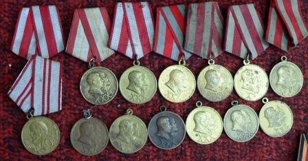 Медали За Отличие в Охране Государственной Границы СССР, За Отличную Службу по Охране Общественного Порядка, За Отвагу на Пожаре, За Спасение Утопающих, Медали 100 Лет со Дня Рождения В.И. Ленина, Двадцать Лет Победы в ВОВ 1941-1945 г.г., Тридцать Лет Победы в ВОВ 1941-1945 г.г., Сорок Лет Победы в ВОВ 1941-1945 г.г., XX лет РККА, 30 Лет Советской Армии и Флота, 40 Лет Вооруженных Сил СССР, 50 Лет Вооруженных Сил СССР, 60 Лет Вооруженных Сил СССР, 70 Лет Вооруженных Сил СССР, 50 Лет Советской Милиции, В Память 800-летия Москвы, В Память 250-летия Ленинграда, В Память 1500-летия Киева. Медали Материнства