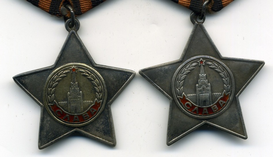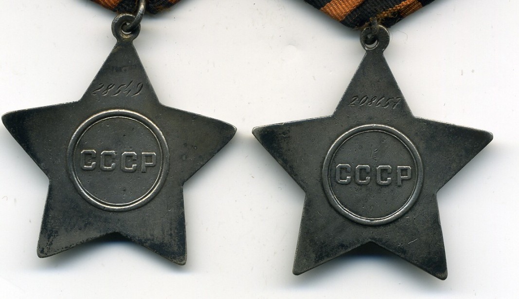 Две Славы сержанта Белова. В отличном состоянии. 2 степень № 28549, 3 степень 208657, ходотайство о выдаче дубликатов удостоверений. Предлагайте.
