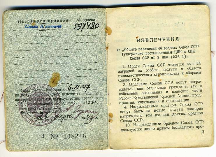 Слава 3 ст на документе.№597480. Знак в хорошем состоянии, пром звено раскушено.