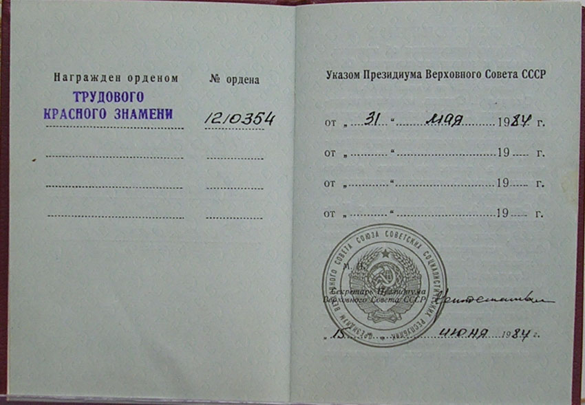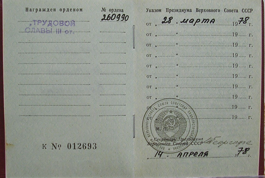 Ленина, Октябрьской Революции, Знак Почёта, Дружбы Народов, За Личное Мужество, Трудового Красного Знамени, Трудовой Славы, Мать-Героиня, Материнская Слава