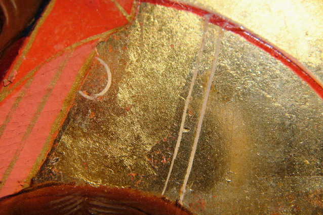 Вот на этом фото и видно, что по золоту лазили... Посмотрите на линию оконтовки головы...А вот остальное кажется не тронутым. С уважением...