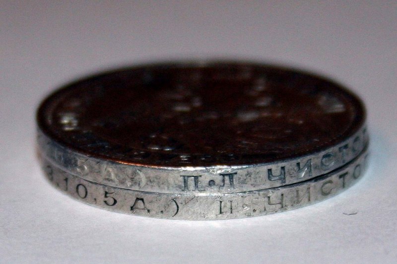 Подскажите, что это. На гурте обычного полтинника 1924 года нет знака минцмейстера. Надпись обычная 9 грамм (2.з.10.5 Д). Там где должны быть буквы П.Л. слабо видны две вертикальные полоски и на месте буквы Л начинается слово "чистого". Буква "г" в слове "грамм" сдвинута от "9" и стоит на месте "р" в обычном полтиннике.