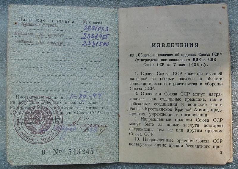Красного Знамени, Суворова, Кутузова, Богдана Хмельницкого, Александра Невского, Ушакова, Нахимова, Отечественной Войны, Красной Звезды, Славы, За Службу Родине в ВС СССР