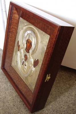 Серебряный оклад,84 проба,1890 год,клейма на окладе и венце,отличное состояние,полностью целая и родная позолота.Размер в киоте 33см на 37см,размер иконы 22,5см на 27,5см.Всё родное.Живопись не реставрирована.Киот заказной современный из лайсвуда(шпон)-ценная декоративная порода дерева,применяется для отделки бильярдных киев и элитного паркета.Киот подогнан идеально,миллиметр в миллиметр.Любые фото по запросу.Старт 60т.р.,блиц-70т.р.