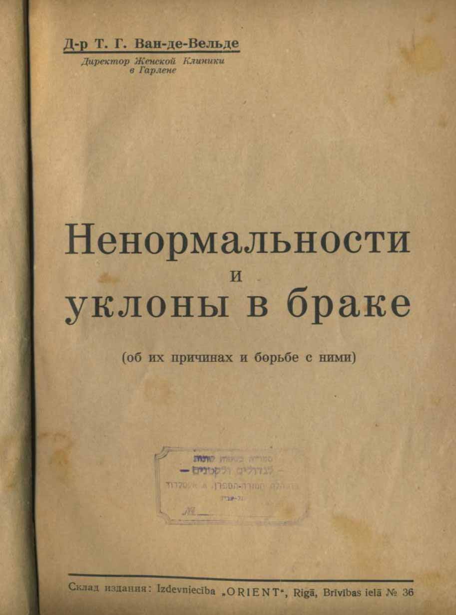 Т.Г, Ван де Вельде Ненормальности и уклоны в браке.1928,271 стр.
