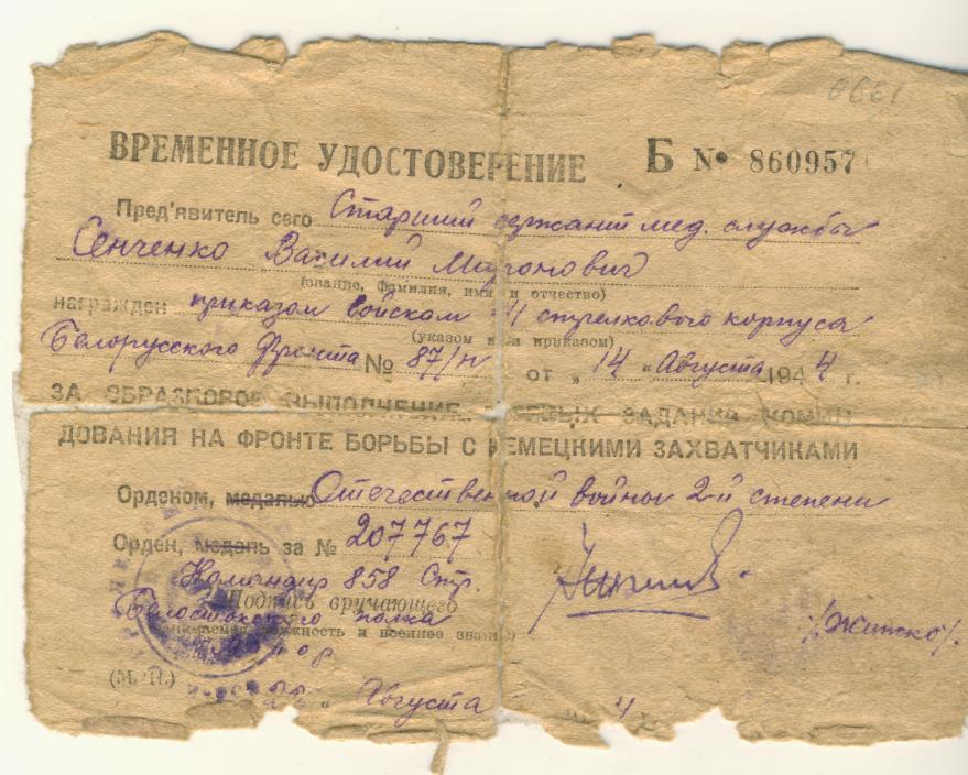 Красного Знамени, Суворова, Кутузова, Богдана Хмельницкого, Александра Невского, Ушакова, Нахимова, Отечественной Войны, Красной Звезды, Славы, За Службу Родине в ВС СССР