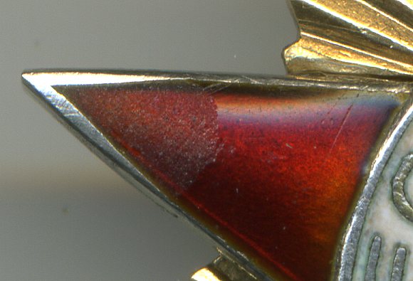 Тип 2, вариант 3 по мондвору. Состояние на скане, гайка серебро, винт 19 витков, диаметр 4,5 мм! Нарушение верхнего слоя эмали на конце луча на 9 часов, на скане видно. Пересыл по РФ. От 28000.