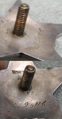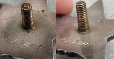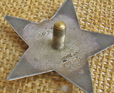 Вот такой знак - винт бронзовый толщиной 4мм, похоже что заводской, но я про такие разновидности не слышал.