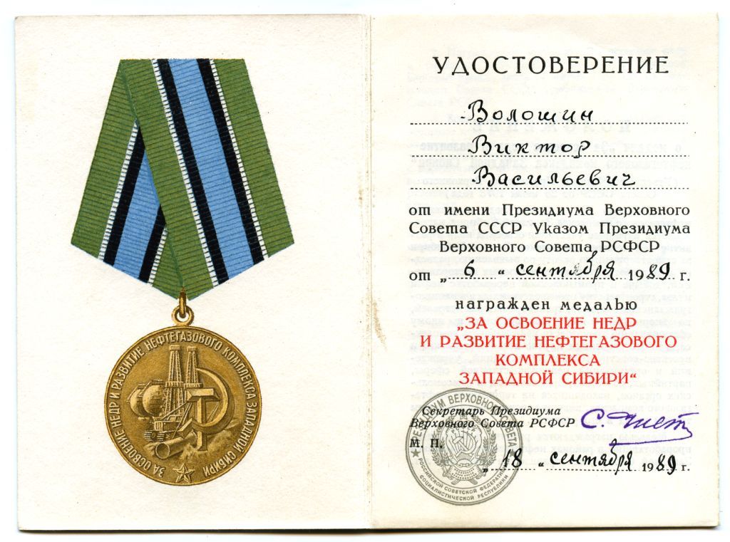 Медали Серп и Молот, За Трудовую Доблесть, За Трудовое Отличие, За Доблестный Труд в Великой Отечественной Войне,За Восстановление Предприятий Чёрной Металлургии Юга, За Восстановление Угольных Шахт Донбасса, За Освоение Целинных Земель, За Строительство БАМ, За Преобразование Нечерноземья РСФСР, За Освоение Недр и Развитие Нефтегазового Комплекса Западной Сибири, Ветеран Труда
