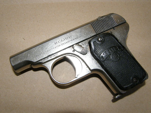 Производился фирмой Robar (Бельгия, Льеж). Значительно более редок, чем Мельо новой модели. Затвор пистолета является отдельной деталью и вставляется в кожух сзади. В этом положении он фиксируется запирающей пластиной. Неавтоматический предохранитель отсутствует. Поверхность никелирована, масса клейм.