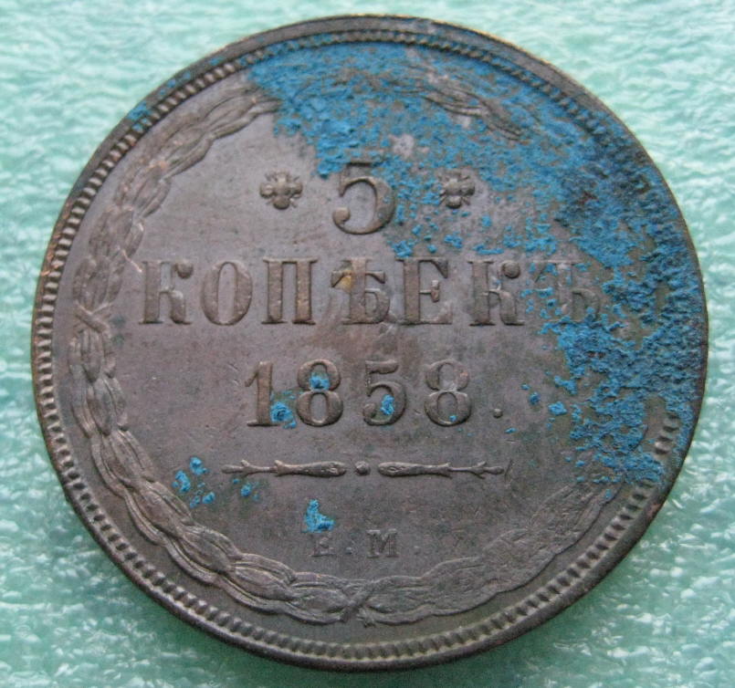 Монета 5 копеек 1858 года.
