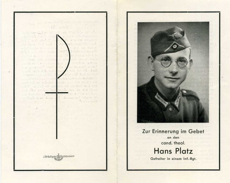 Предложу вот такую похоронку-некролог на лейтенанта пехотного полка - Йозефа Цинка, погибшего 2 апреля 1945 года за свой фатерлянд в Вестфалии, в возрасте 31 года.
