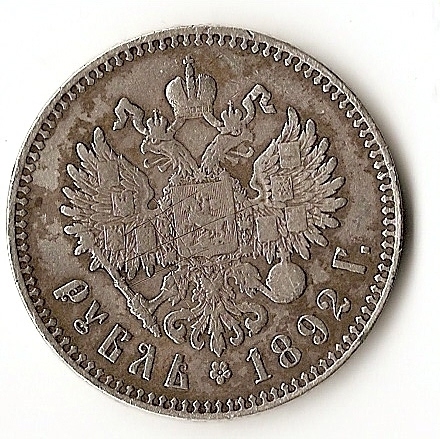 Рубль 1892 года,Александр 3, состояние на скане, буквы А.Г